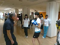 Acompañando al grupo estuvo D.Paco Santaengracia, conserje del centro y brillante boxeador en su no muy lejana juventud, además de Carmen Ruiz, profesora de Educación Física y Jefe de Departamento que como extiradora de esgrima también demostró sus aptitudes para este deporte, que piensa incorporar a la programación.
